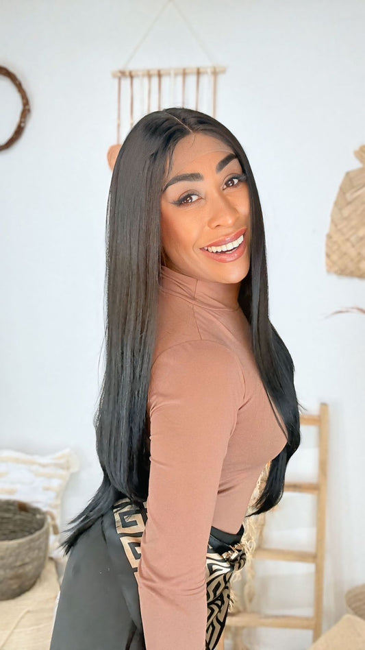 Wig humana Quila - castanho escuro #1B
