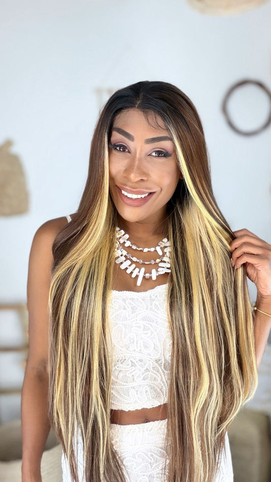 Lace Front Yaki 30 Polegadas Loiro Golden Balayage DR2