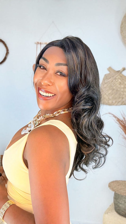 Lace Wig Bio Fibra Yaki Loiro Golden Balayage DR2 30"