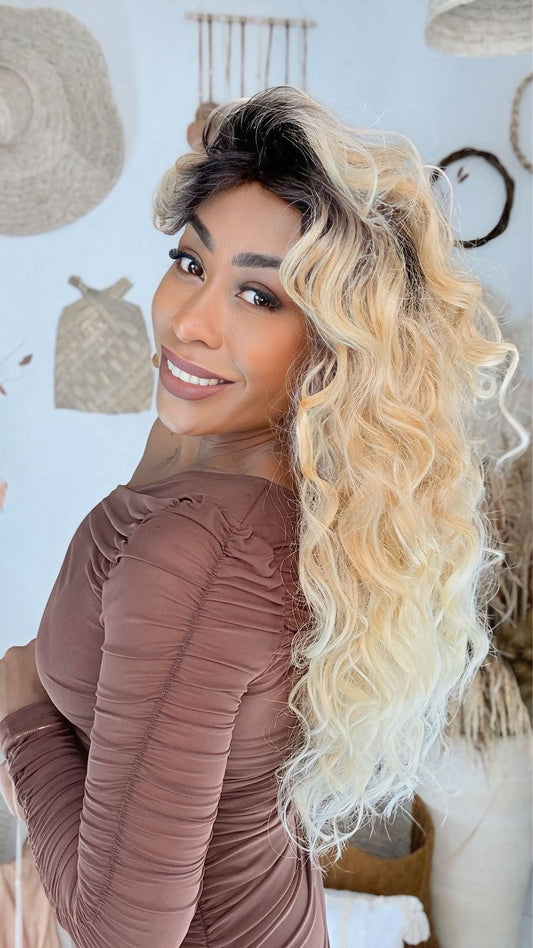 Lace Wig Bio Fibra Leny - Loiro com Ponto de Luz #RT4/9/613